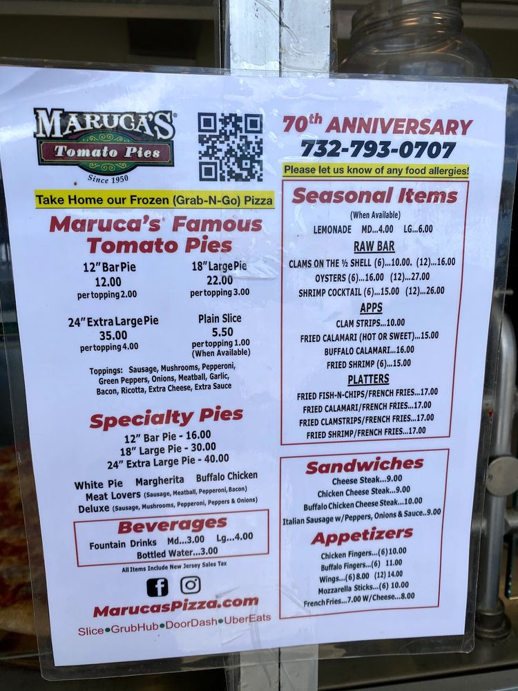 Welcome to Maruca’s Tomato Pies, a charming pizza destination nestled in Seaside Heights, NJ. Known for its delicious tomato pies, Maruca's offers a unique twist on classic flavors that pizza lovers crave. Their menu features specialties like the 18" and 24" large tomato pies, delivering fresh, tangy tomato goodness in every bite.